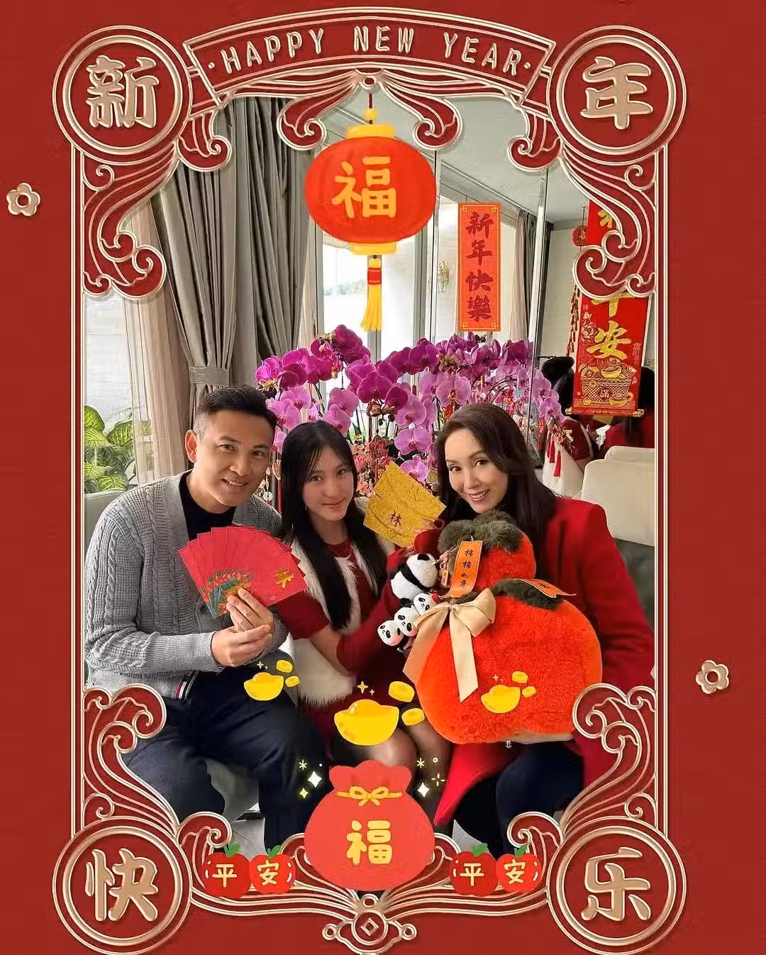 55歲郭可盈曬全家福拜年,一家三口同框溫馨有愛,15歲女兒像爸爸