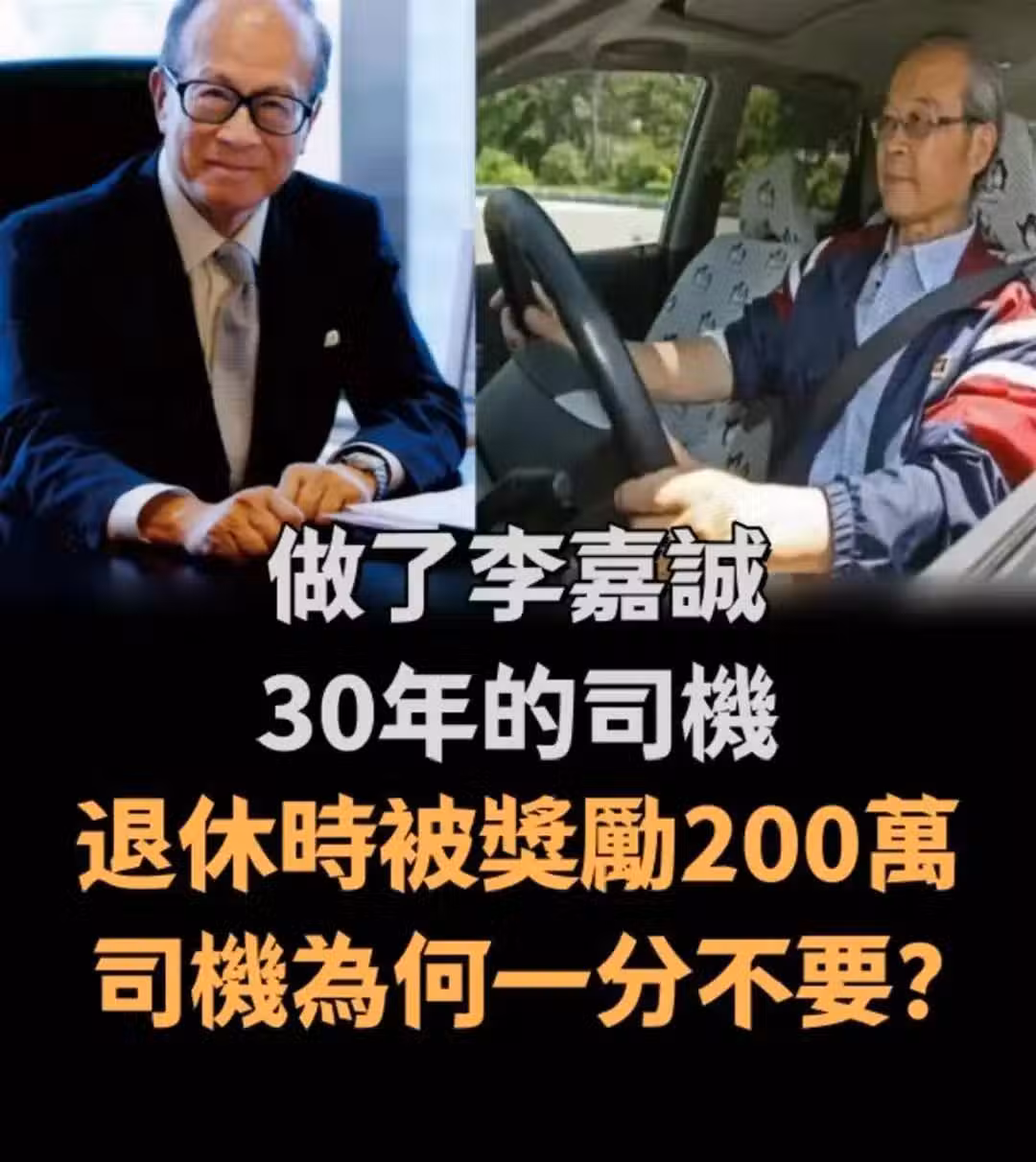 做了李嘉誠30年的司機,退休時被獎勵200萬,司機為何一分不要!