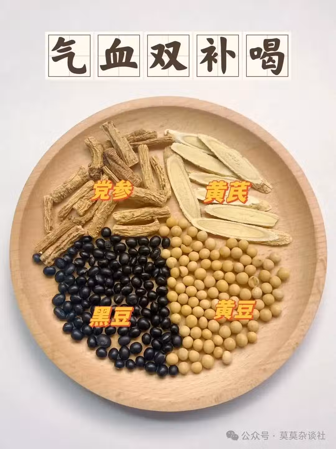 功效: 黃芪和黨參是中醫界的「補氣雙星」,可以幫助提亮氣色、改善疲勞。而黑豆和黃豆搭配,不僅富含植物蛋白,還能養肝護膚,特別適合熬夜族和氣虛體質的小夥伴。