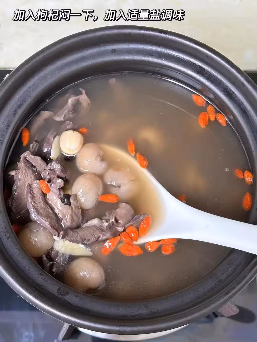 這湯為啥這麼厲害呢?這裡面的食材可都各有神通。蓮子能瀉火,要是心煩、睡覺不好,用蓮子芯煮水喝都管用;枸杞大補肝血,還能滋腎陰,腎水足了就能滅心火,讓心神安定;黑豆入脾、腎經,能把腎水補起來;百合既能健脾胃,又能養心安神;桂圓性溫,最適合用腦多、操勞多,心血不足、脾氣虧虛的心脾兩虛之人,它可以補益心脾、養血安神,把虧掉的心血補回來;豬心更是補益的好東西,對於心血不足或心陰不足導致的心慌、失眠多夢、心跳不安的人來說,吃它再合適不過了。