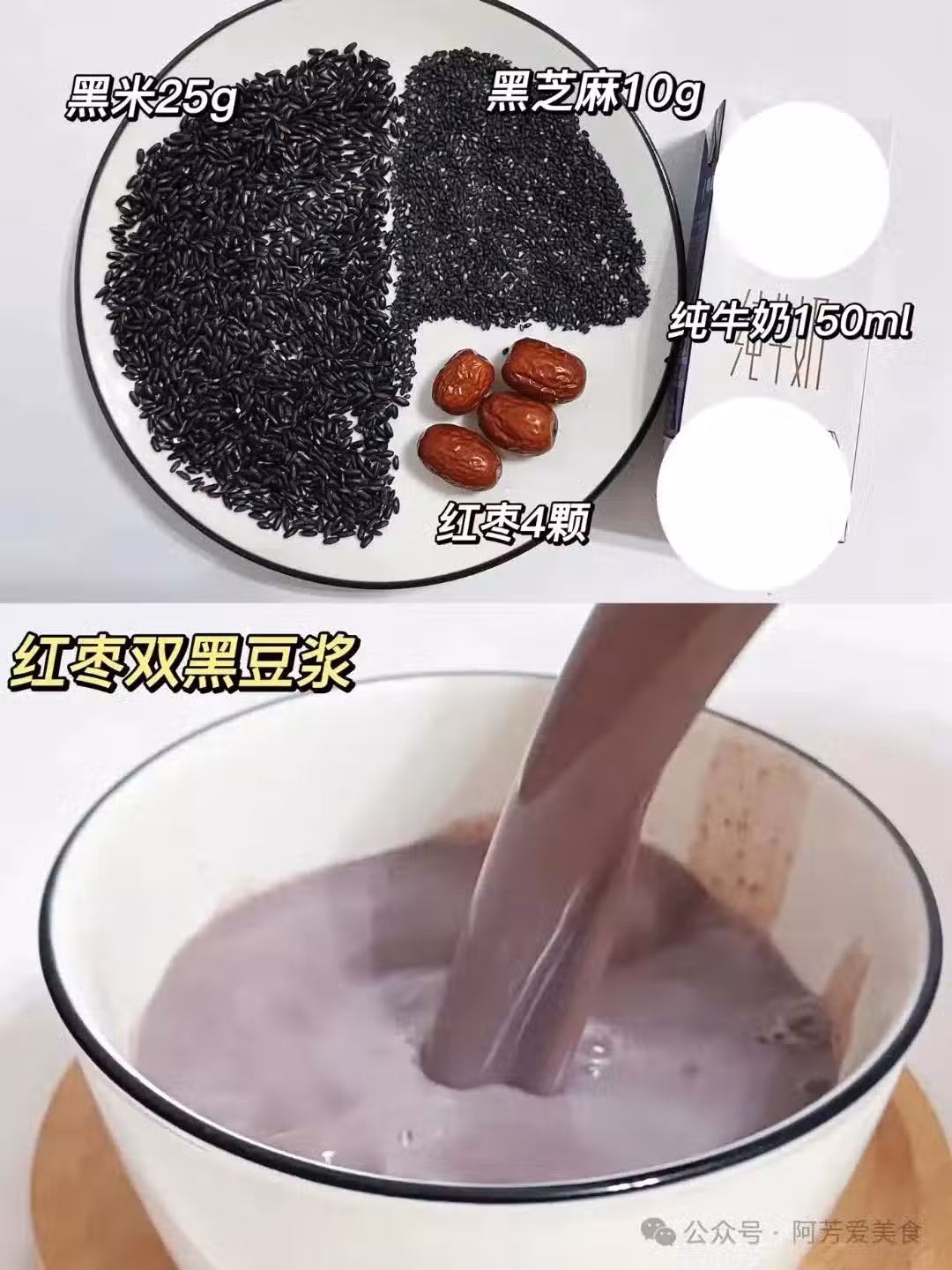 黑米黑芝麻搭配紅棗再加入牛奶,整杯的口感非常的好喝,還帶著一絲甜味,紅棗要記得去核這樣會更加的入味,奶香味也非常的濃郁!