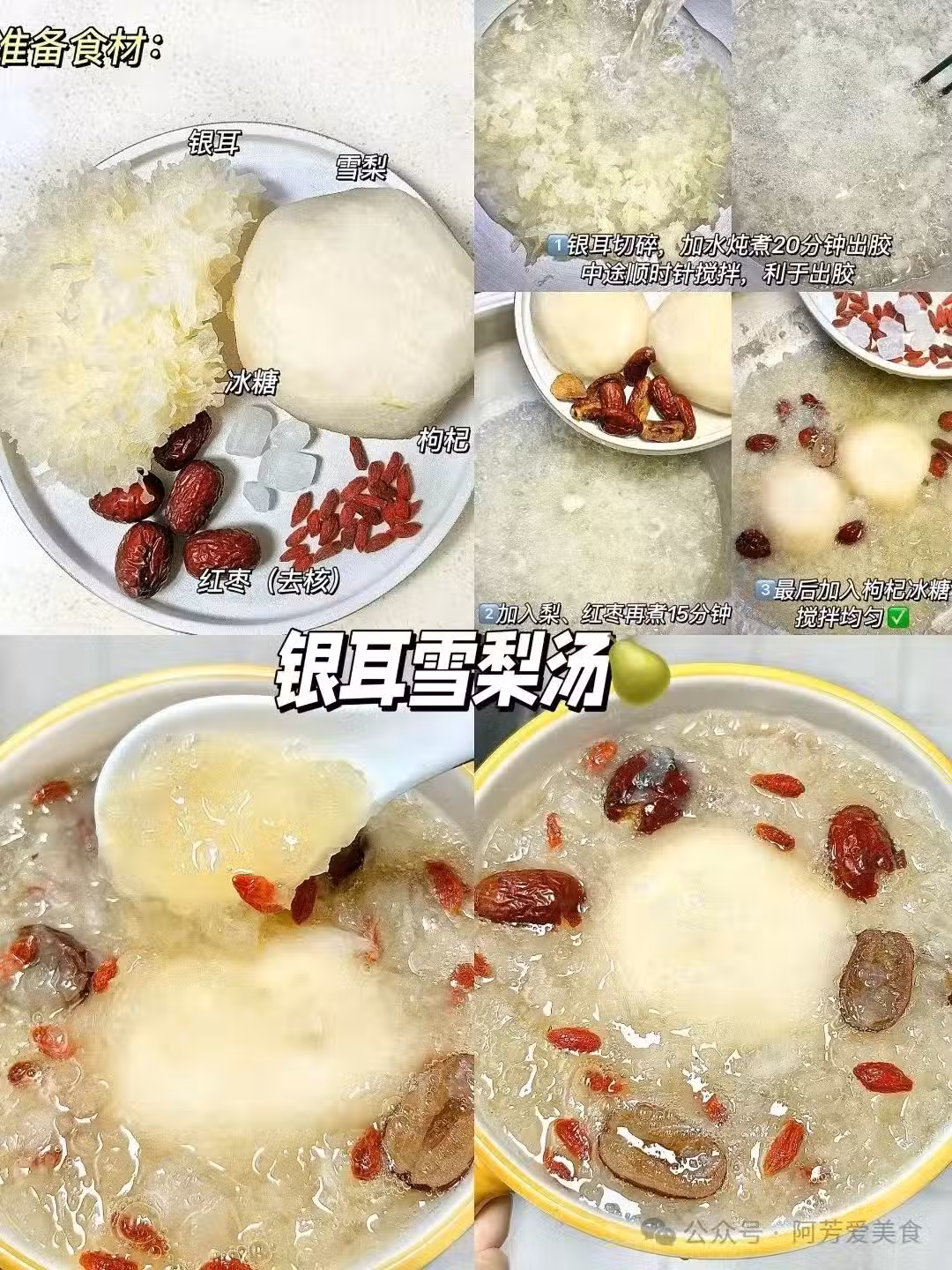 甘蔗雪梨湯和銀耳雪梨湯,二種不太一樣,甘蔗雪梨會偏比較水潤一點,而銀耳雪梨湯會比較濃稠軟糯一些。
