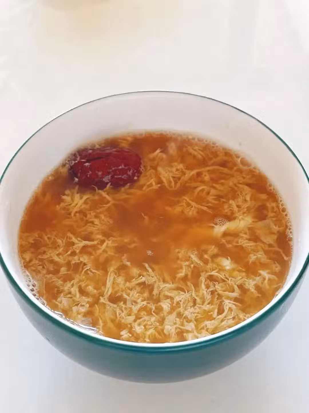 超簡單,燒一小鍋開水加入紅糖,加入攪勻了的雞蛋,放兩顆棗,家裡有枸杞的放兩顆枸杞。每天喝一小碗,不難喝,甜甜的還有雞蛋香。