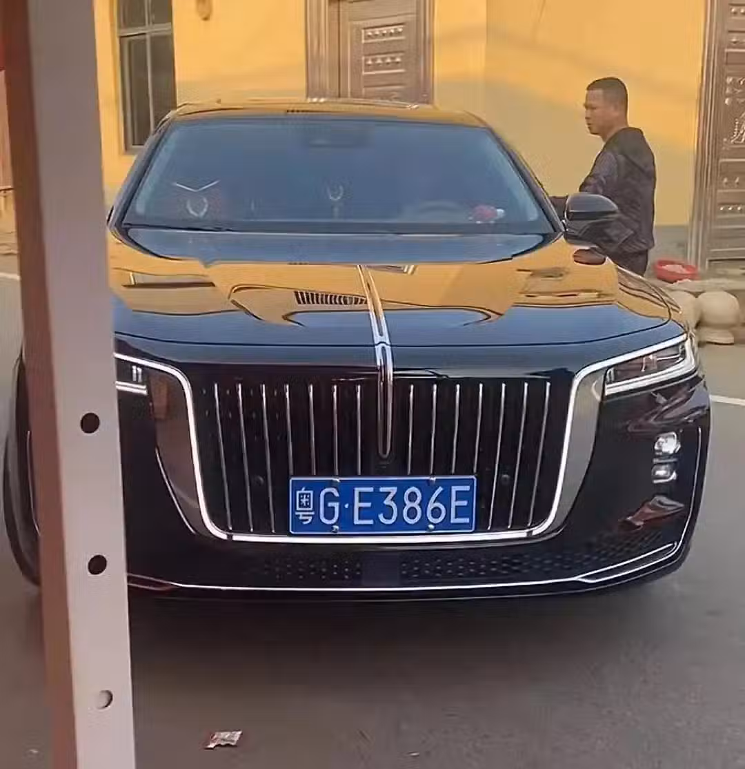 全爸開著全紅嬋的紅旗h9去做保養,車上四個字中國榮耀太耀眼~~