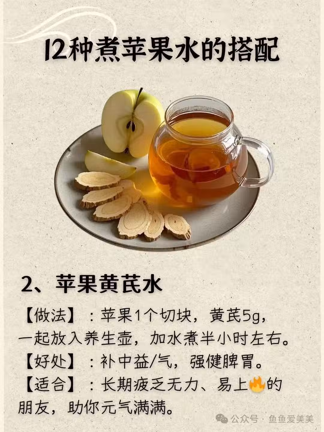 三、蘋果山楂紅棗水 做法:蘋果1個切塊,紅棗6顆去核,一小把焦山楂,一起放入養生壺,加水煮半小時左右。 好處:消食導滯、助消化。 適合:食積內熱、舌苔厚膩、口氣不清新的人群。