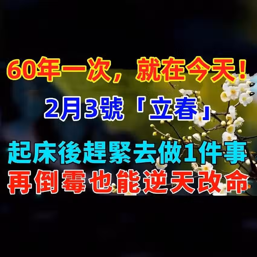 60年一次,就在今天!2月3號「立春」,起床後趕緊去做1件事,再倒霉也能逆天改命!!!