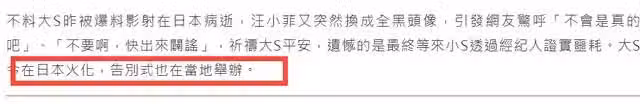 至於後續安排,媒體透露大S的遺體將在日本火化,部分追悼會也將會在當地舉行。世事無常,希望大S一路走好,這樣的糾葛真的有些不值得。