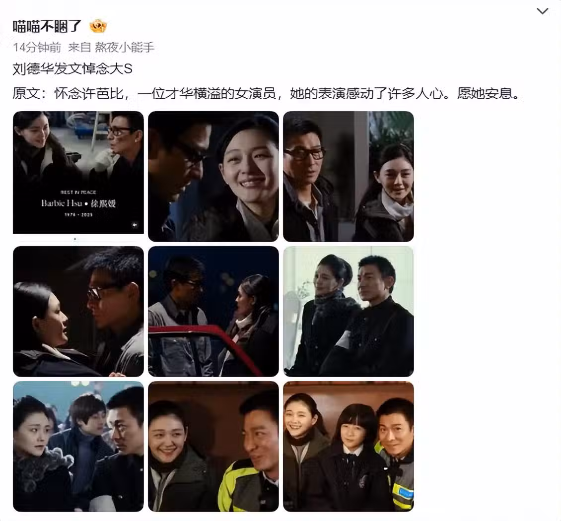 另外,包括朱孝天、黃曉明、楊丞琳、阿雅等幾十人發文悼念,大S老公具俊曄接受韓媒採訪坦言心情悲痛,證實大S死訊後匆匆掛斷電話。