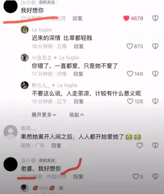 大S在日本火化,說明汪小菲錯過了見她最後一面的機會,這一錯過就是一輩子,大S走後,感覺全世界都開始愛她了,不少網友剪輯了很多有關於大S生前的視訊合集,以此來悼念大S,也送別自己的青春時光,沒想到汪小菲也刷到了並評論「老婆,我好想你」,不過很快他又重新編輯了留言稱「我好想你」,去掉了老婆兩個字!