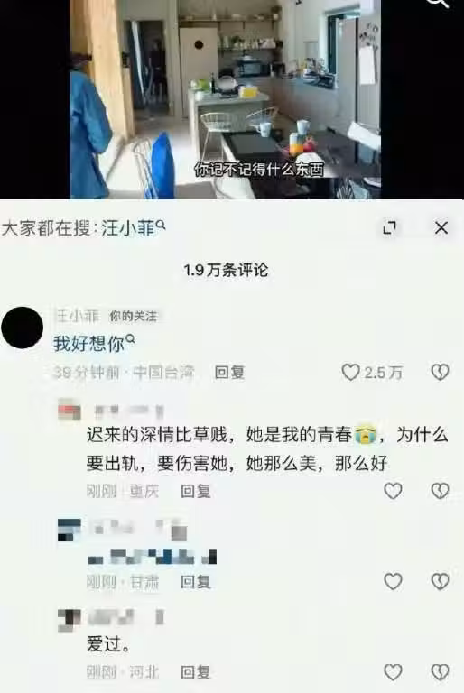2月4號,有網友發現,汪小菲在他與大S早期的綜藝節目留言處,發表了三個動態,第一個動態是:老婆,我好想你,引發熱議後,他再度分享動態,並寫道:我好想你。