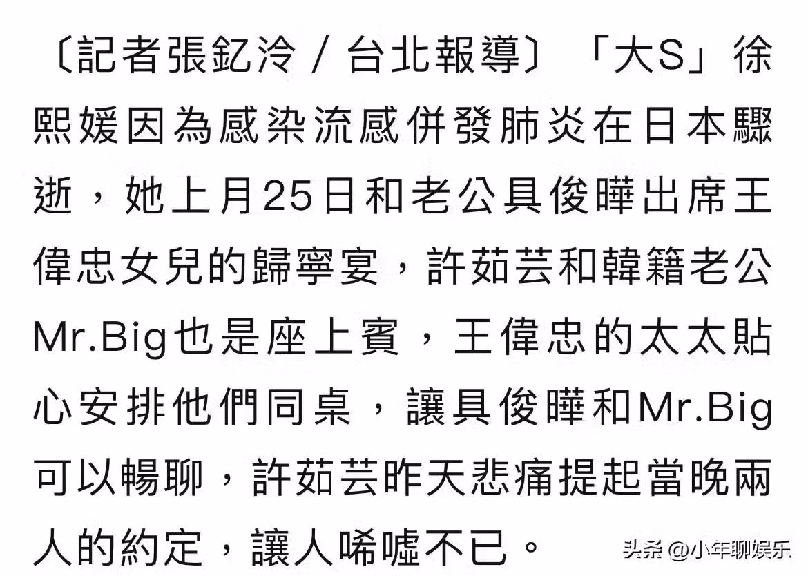 說完這句話後,大S深情的看著具俊曄,笑得眯起了雙眼,許茹芸曝當時場面:那甜膩幸福的笑臉,至今仍在我的腦海…