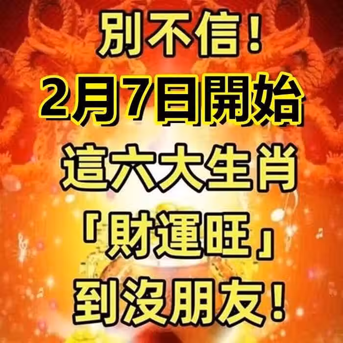 別不信!2月7日開始,這六大生肖「財運旺」到沒朋友