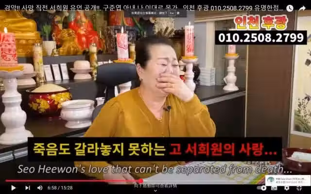 大S逝世|韓命理師稱大S附身 撫胸暴哭:我想活下去