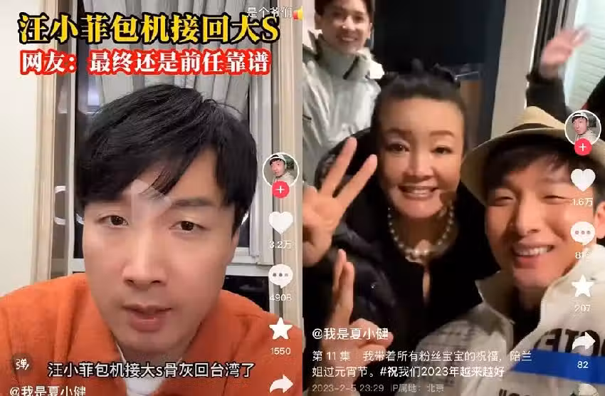 認識張蘭的大陸網紅在直播中稱大S骨灰包機回台的錢是汪小菲出的。