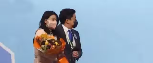 郭晶晶為了幫老公助陣,罕見燙頭髮隆重亮相,配粉色西裝溫柔賢惠~~