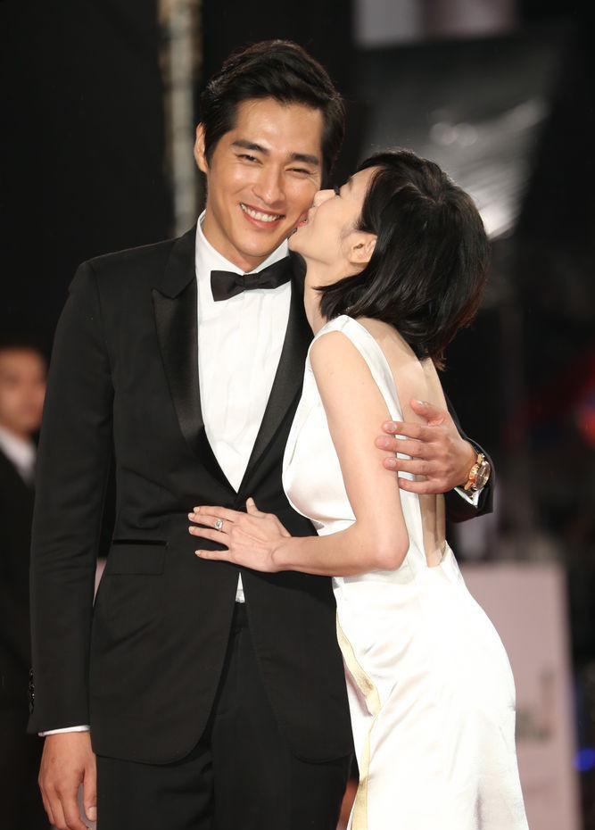 藍正龍的妻子周幼婷氣質很受重視,和丈夫一起走紅毯的時候,穿著白色的綢緞連衣裙,很有魅力,很有女人味。