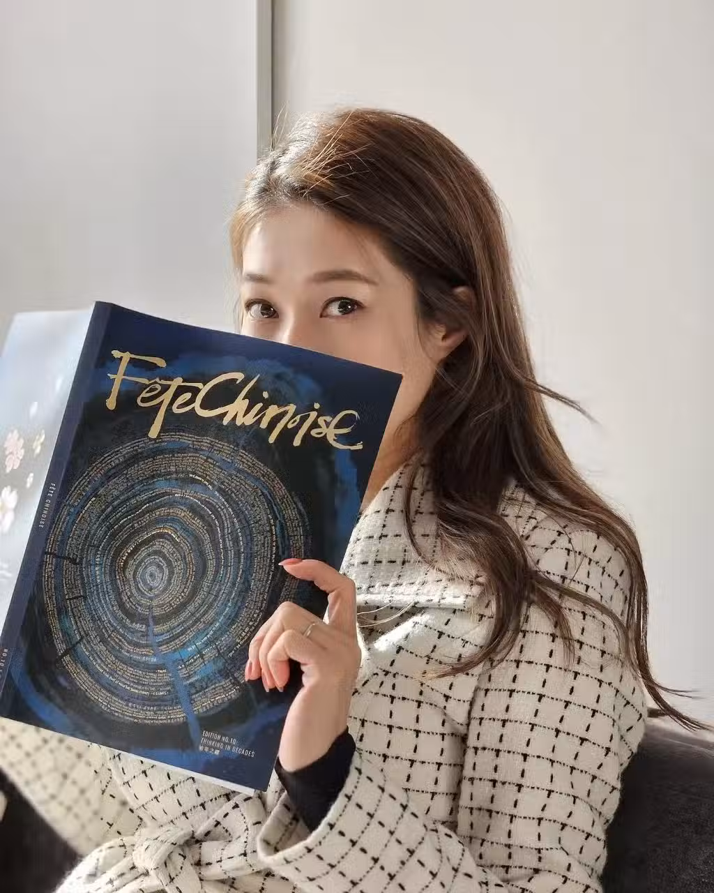 鍾嘉欣笑指為照顧三個小孩,不用靠鬧鐘依然可在早上7時自然醒來。照片中,她的頭髮略顯凌亂,像是剛起床的樣子,穿著晨衣般的長外套,但即便是淡妝,鍾嘉欣依然神采飛揚。
