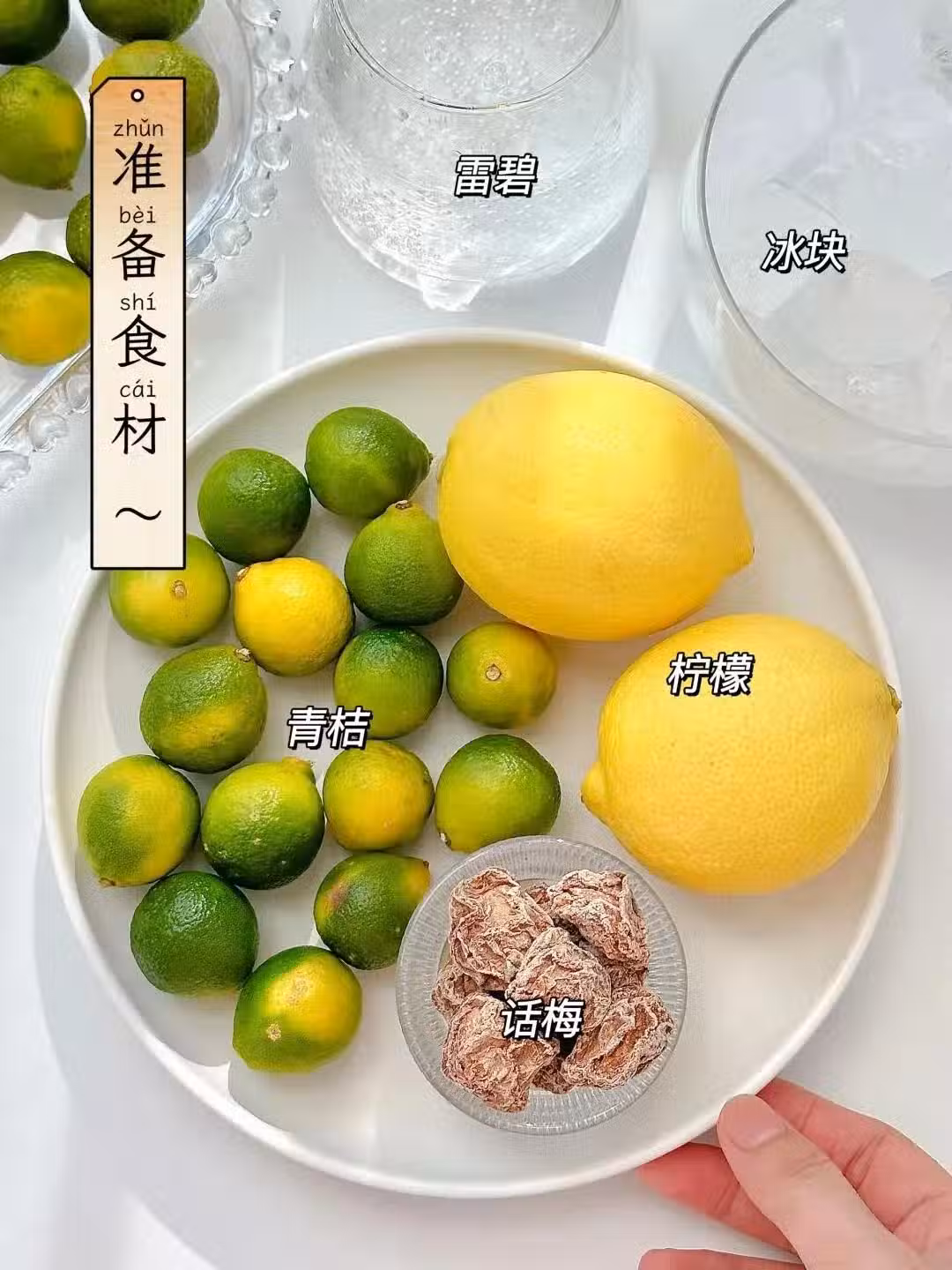青桔20g,話梅10g,檸檬1個,雪碧200ml,冰塊適量