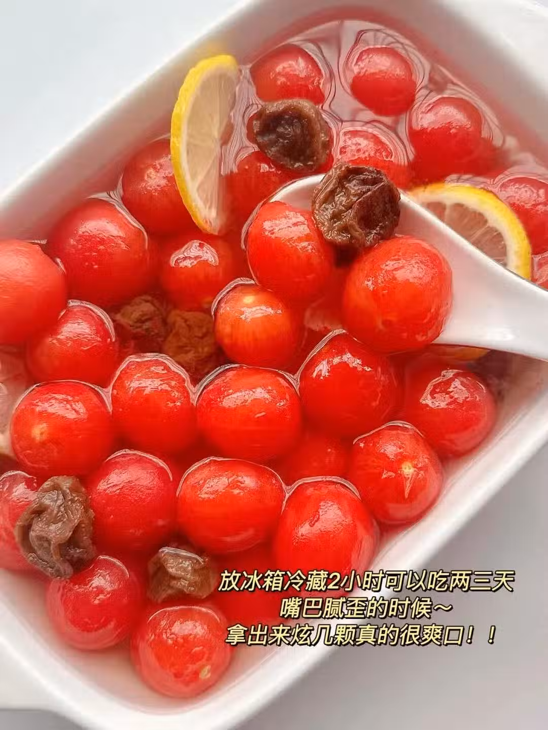 小番茄腌得晶瑩剔透又入味,配上酸酸甜甜的話梅,滿嘴的梅香,不僅好喝,更好吃!