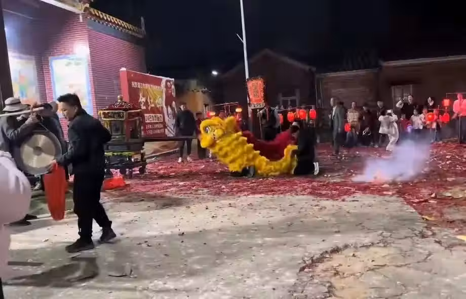 邁河村保留著濃郁的傳統習俗,在年例這一天將春節的喜慶和熱鬧延續的淋漓盡致。村子裡的年輕人穿著統一服裝,精神抖擻的聚集在祠堂前,舞龍舞獅的隊伍也緩緩前行。
