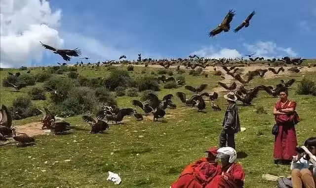 「神秘」的藏族天葬禮儀:褪衣物點燃松柏,高僧禱告任由禿鷲啃食