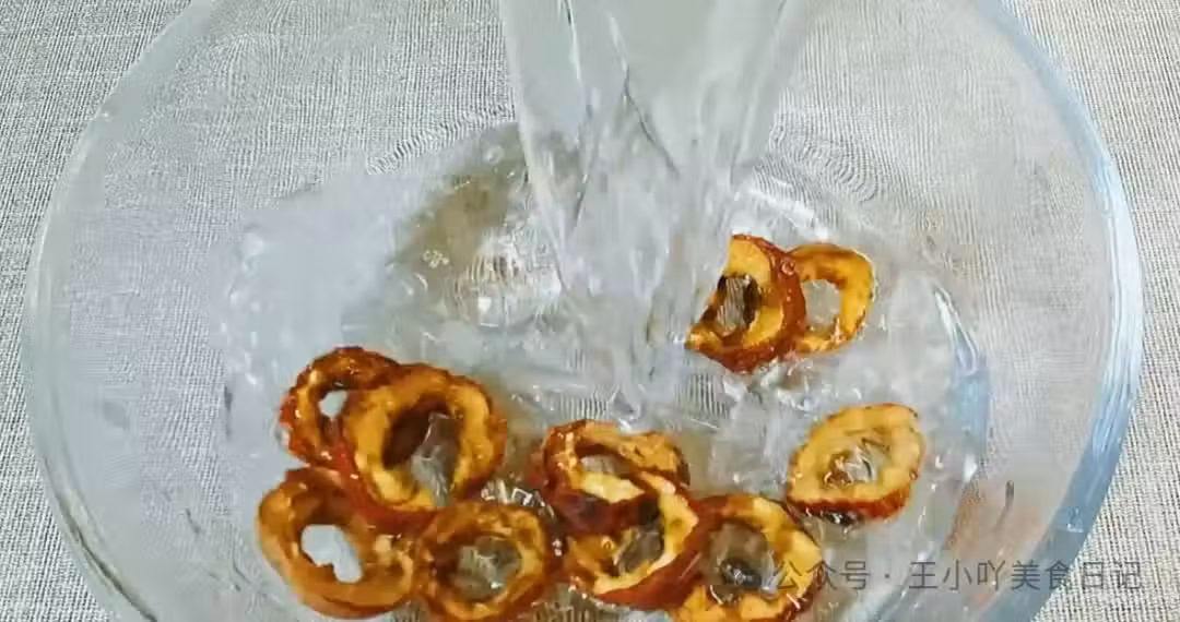 1、準備山楂:首先,將山楂片放入一個碗中,加入足夠的清水,浸泡10分鐘。這一步是為了軟化山楂片,便於後續的清洗和煮制。