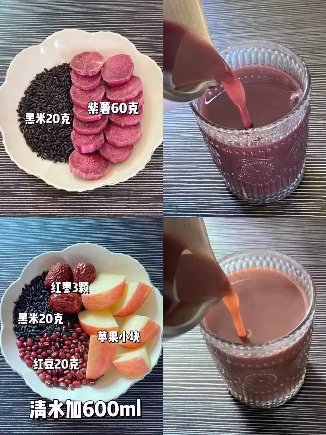 燕麥20g、黑芝麻10g、山藥片12g、紅棗2顆