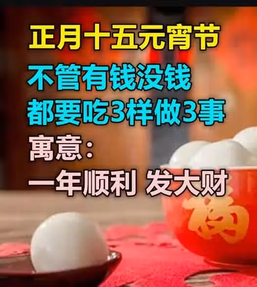 正月十五元宵節,不管有錢沒錢,都要吃3種食物做3事!寓意:一年順利,發大財