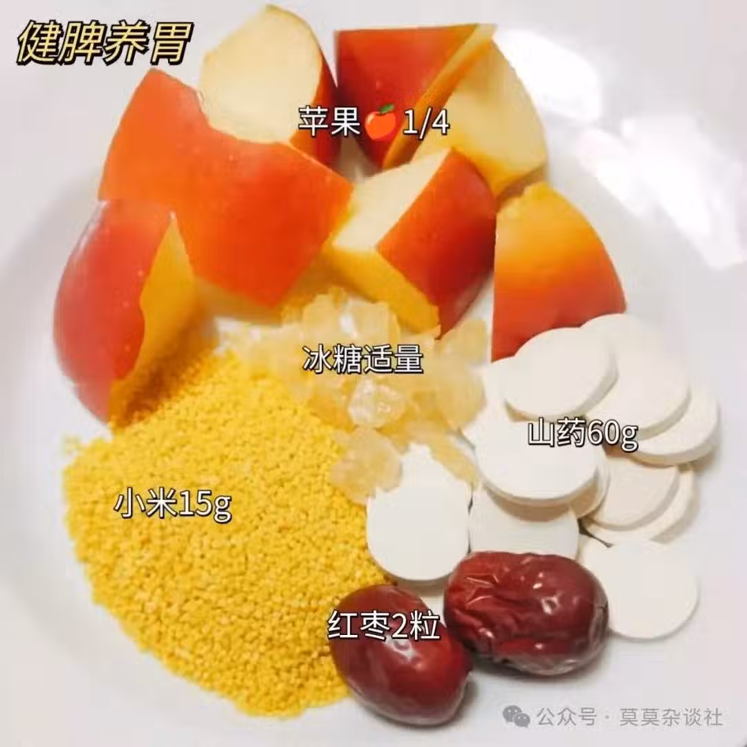 雨水節氣,天氣開始回暖,但濕氣也逐漸加重,容易讓人感覺疲倦、食欲不振。山藥健脾養胃,小米溫潤易消化,蘋果富含果膠,能幫助清理腸道。