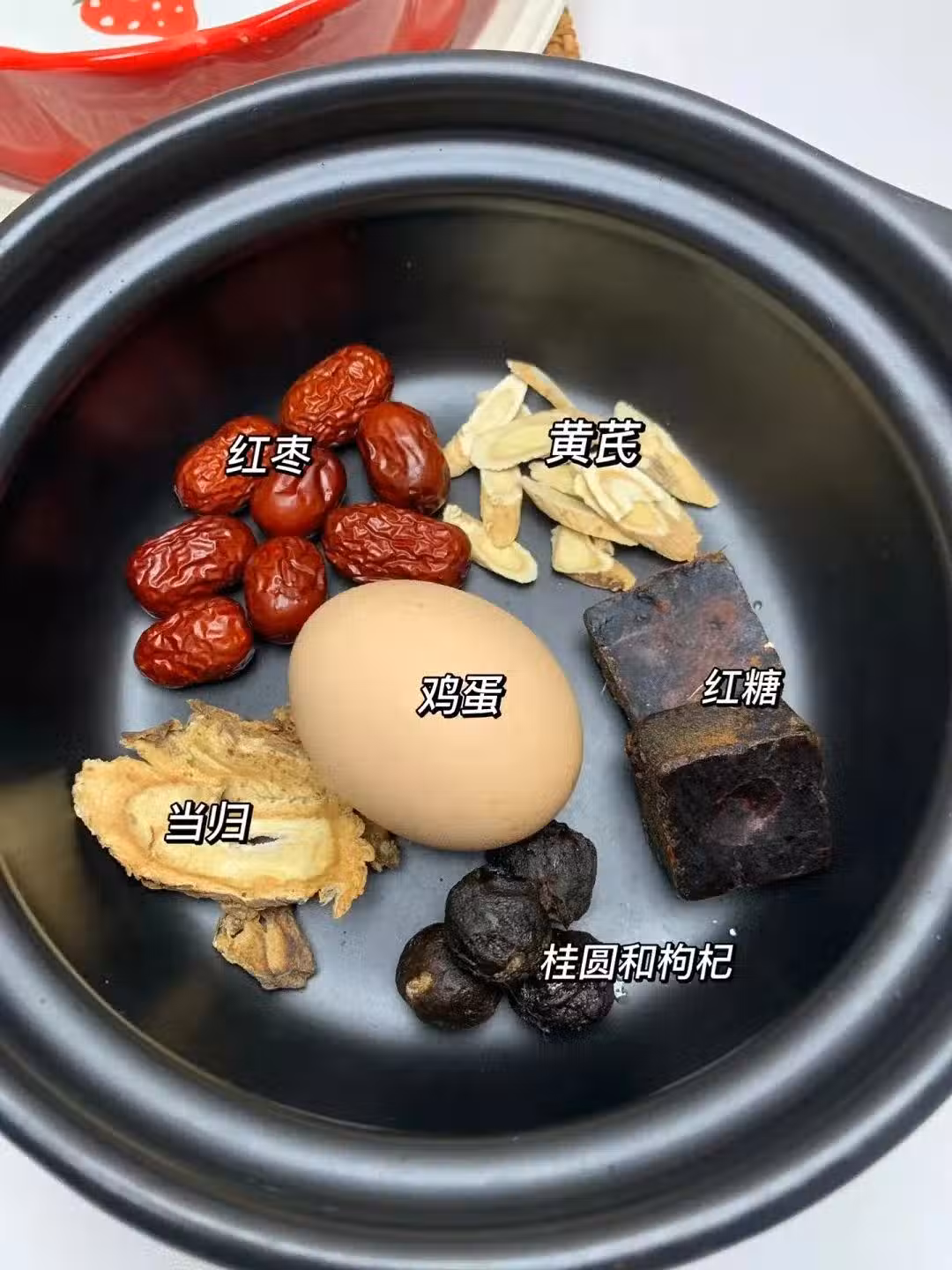 1️⃣食材全部倒入鍋中,煮15分鐘後撈出雞蛋去殼,加入紅糖枸杞煮10分鐘後,最後放回雞蛋再煮5分鐘即可;
