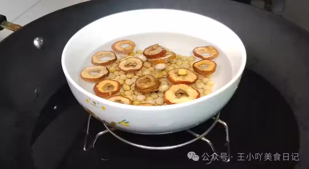 5.加水蒸煮:接著,向湯碗中加入約一碗半的清水(或根據個人喜好調整水量)。然後,將湯碗放入蒸鍋中,蓋上鍋蓋,大火燒開後轉小火,隔水蒸煮約30分鐘。期間無需添加任何糖或調味料,保持食材的原汁原味。