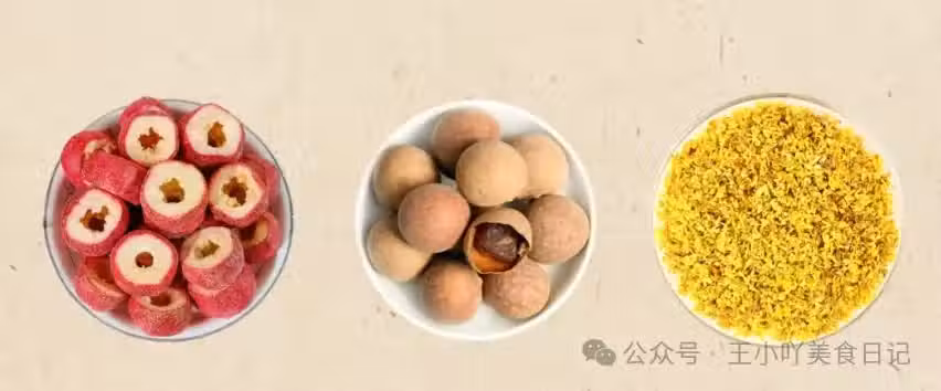 食材清單:山楂6克,桂圓肉6顆,桂花2克