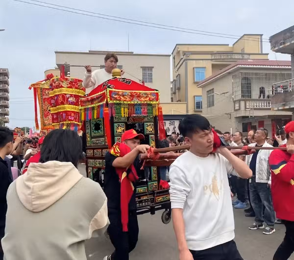 全紅嬋哥哥全進華今年參與了游神活動,他一度上了轎子,儼然成為游神活動的主角之一。