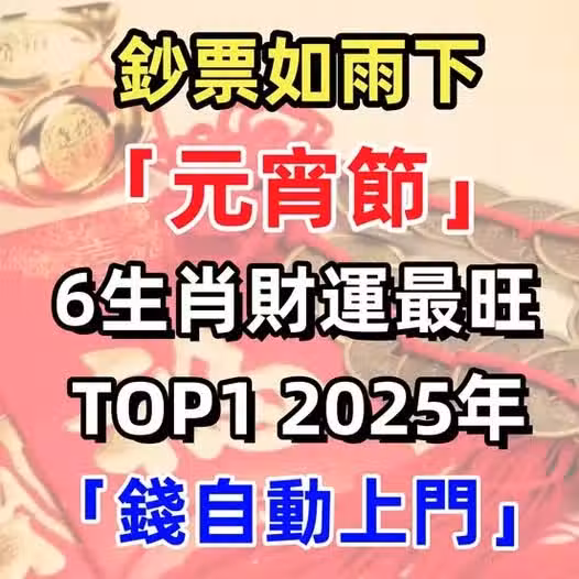 鈔票如雨下!「元宵節」6生肖財運最旺,TOP1「錢自動上門」