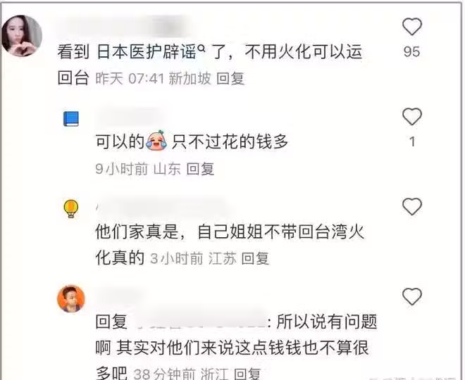 對此更有網友專門發帖說大S的親人果斷地將其處理火化,此事件一定是有內幕的。