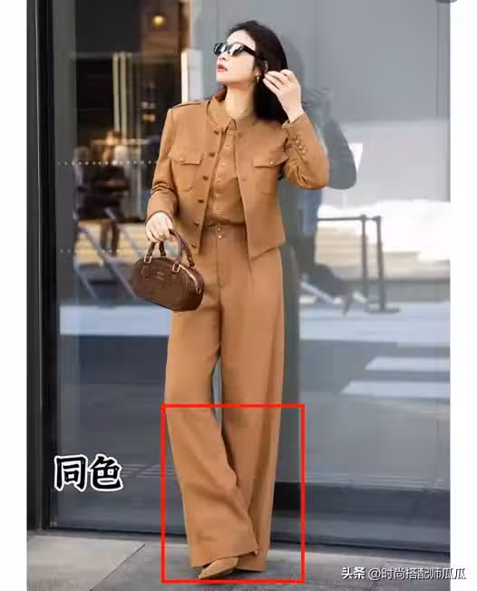 穿搭小白想要快速上手,就採用下半身同色系的搭配方式,也就是鞋子和褲子同色搭配,這兩者在視覺上形成統一的流暢線條,也就自然達到了視覺向下延伸的作用。