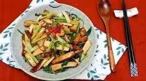 2、起鍋倒入適量油,燒熱後放入干辣椒、蔥姜爆香,倒入豆乾煸炒一會兒,表面焦黃後倒入芹菜段,大火翻炒2分鐘,加入適量生抽、食鹽調味,翻炒均勻後即可出鍋。