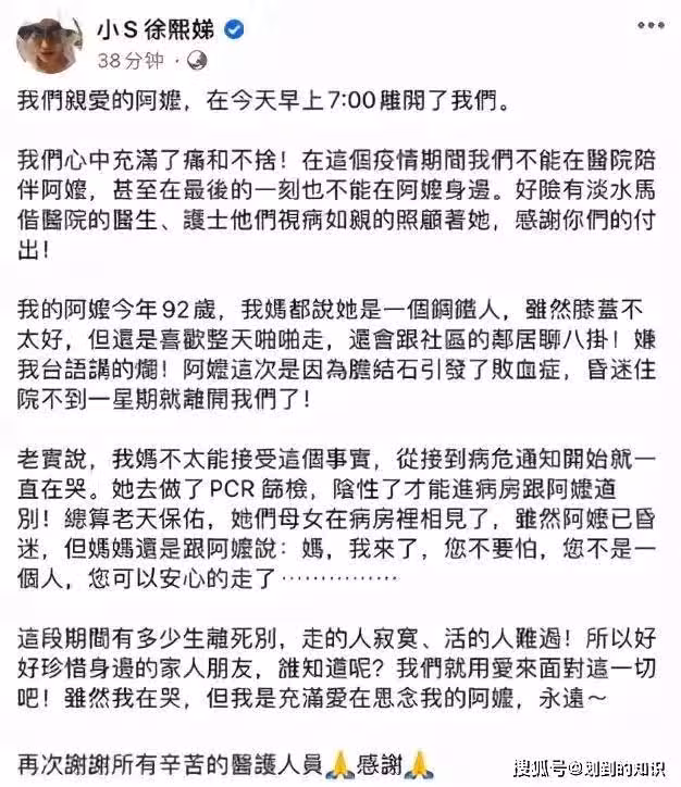 2021 年 7 月 ,小 S 發文說外婆離開了........。