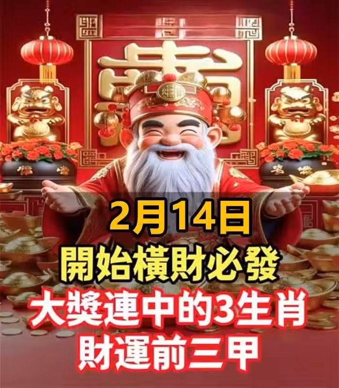 2月14日開始橫財必發,大獎連中的3生肖,財運前三甲
