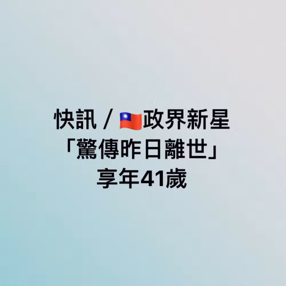 快訊/政界新星「驚傳昨日離世」享年41歲