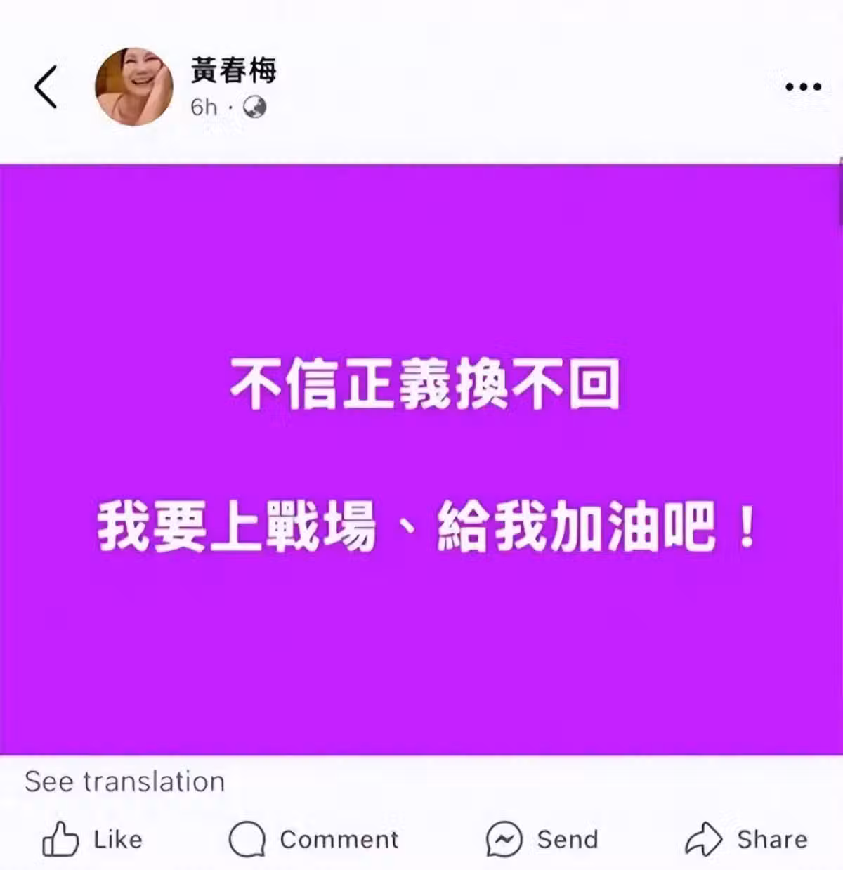 可是,汪小菲和妻子馬筱梅剛飛北京,黃春梅就豎起大旗,為女兒「上戰場」。