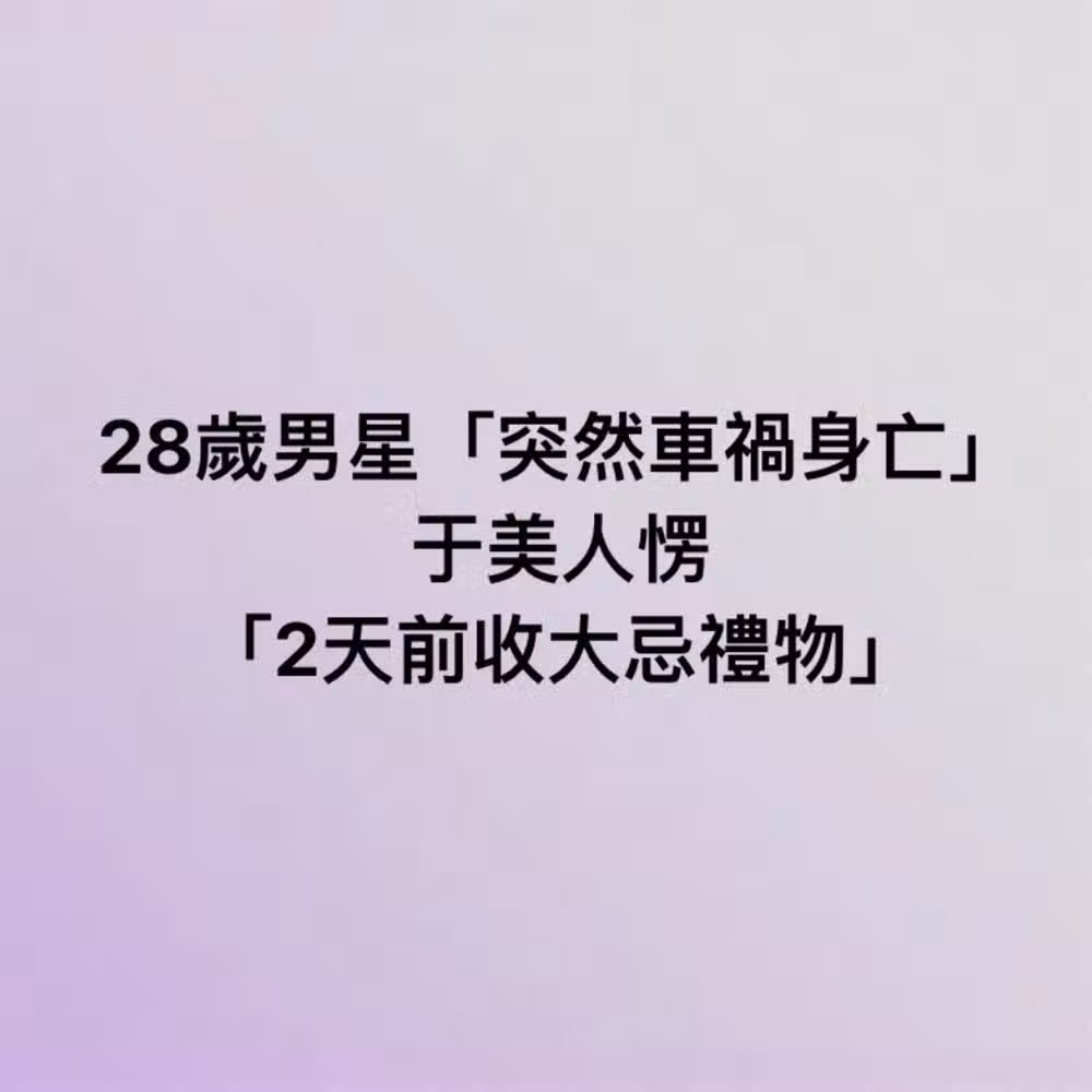 28歲男星「突然交通事故身亡」...于美人愣「2天前收大忌禮物!」