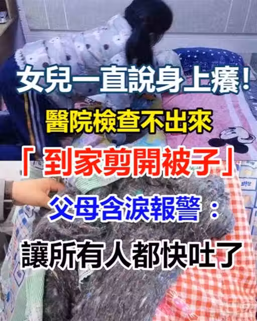 女兒一直說身上癢!醫院檢查不出來 「 到家剪開被子」 父母含淚報警 :讓所有人都快吐了…