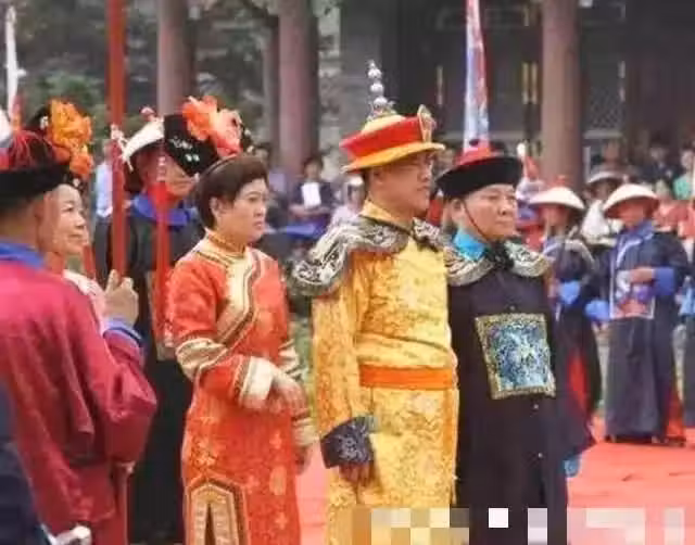 只見恆紹穿著全新定製的刺繡「龍袍」,在僱傭的「文官武將」群演的跪拜與頌揚中,坐上了金燦燦的「龍椅」,體驗了一把啥叫至高無上的真龍天子排場。
