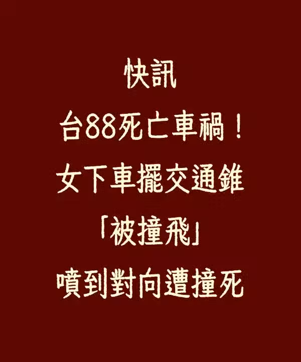 快訊/台88死亡車禍!女下車擺交通錐「被撞飛」噴到對向遭撞死