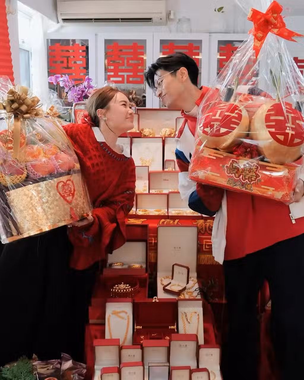 婚期進入最後階段,譚杏藍(15日)在社媒貼出多張相片,雖然簡單寫道:「15.02.25 過大禮,滿滿的祝福,準備正式成為一家人啦!感謝各位幫忙。」但從她分享的照片所見非常誇張。