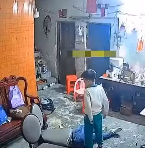 叫人無果後,兒子回到屋內。