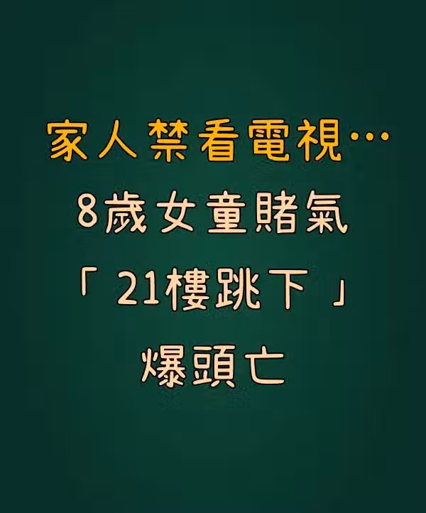 家人禁看電視...8歲女童賭氣 21樓跳下「爆頭亡」