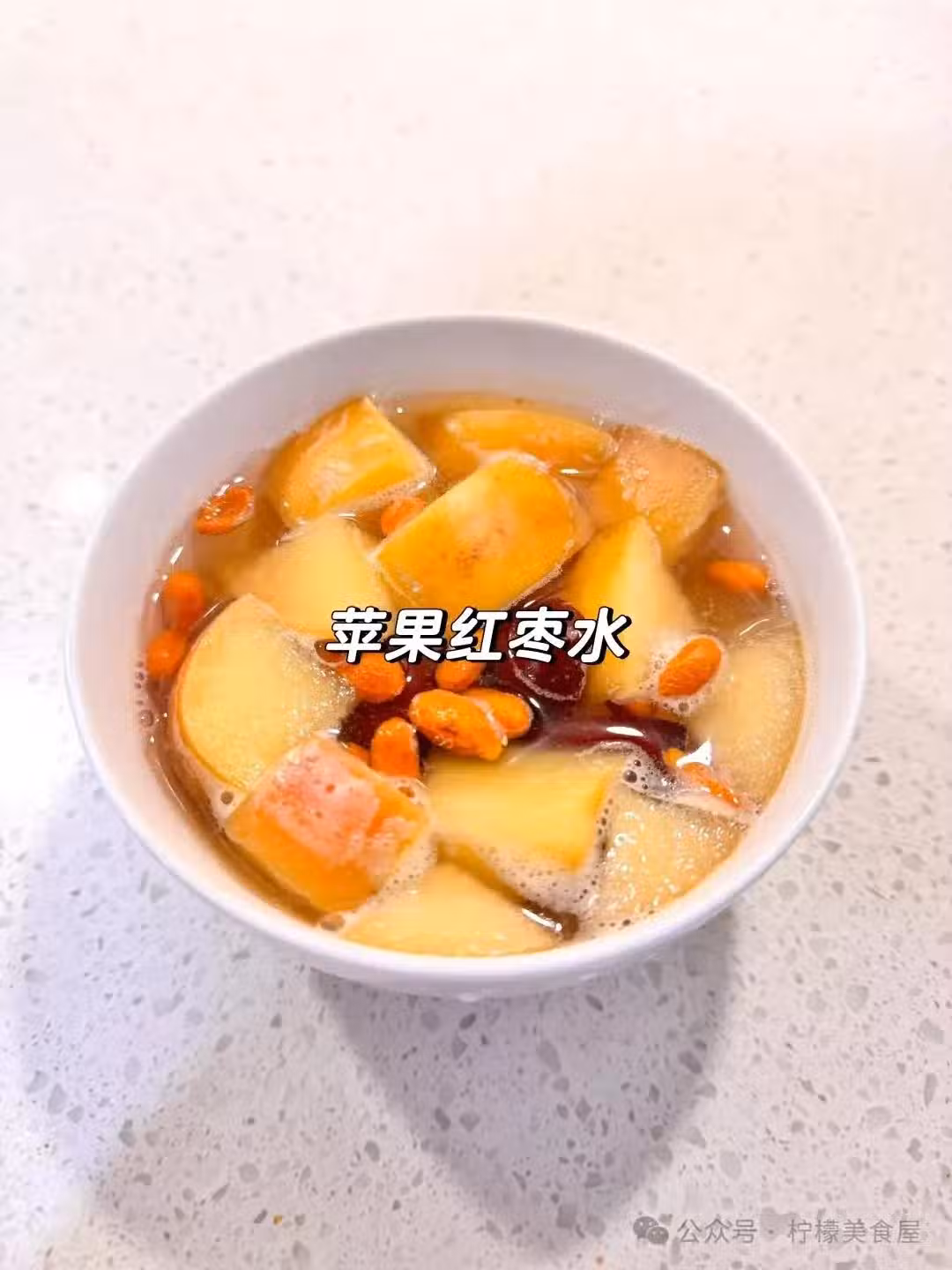 簡單版蘋果紅棗枸杞水,大人小孩都可以喝,在家沒事的時候,煮著喝,真的很不錯,比白開水強多了。 甜甜的,暖暖的,春天這個季節喝,特別好,補氣養血、健脾養胃。 食材: 蘋果一個、紅棗、枸杞 做法: 1、蘋果去皮去核切塊,紅棗去核對半切開。 2、蘋果、紅棗、枸杞放到鍋里,加適量水,大火燒開轉小火15分鐘左右。