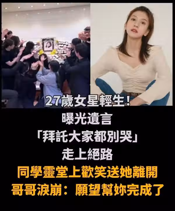 27歲女星輕生!曝光遺言「拜託大家都別哭」走上絕路 同學靈堂上「歡笑送她離開」哥哥淚崩:願望幫你完成了!